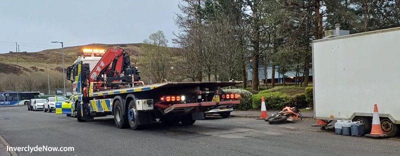 Police remained at the scene until a motorbike lying on the ground beside a mobile snack bar was removed by a recovery truck.